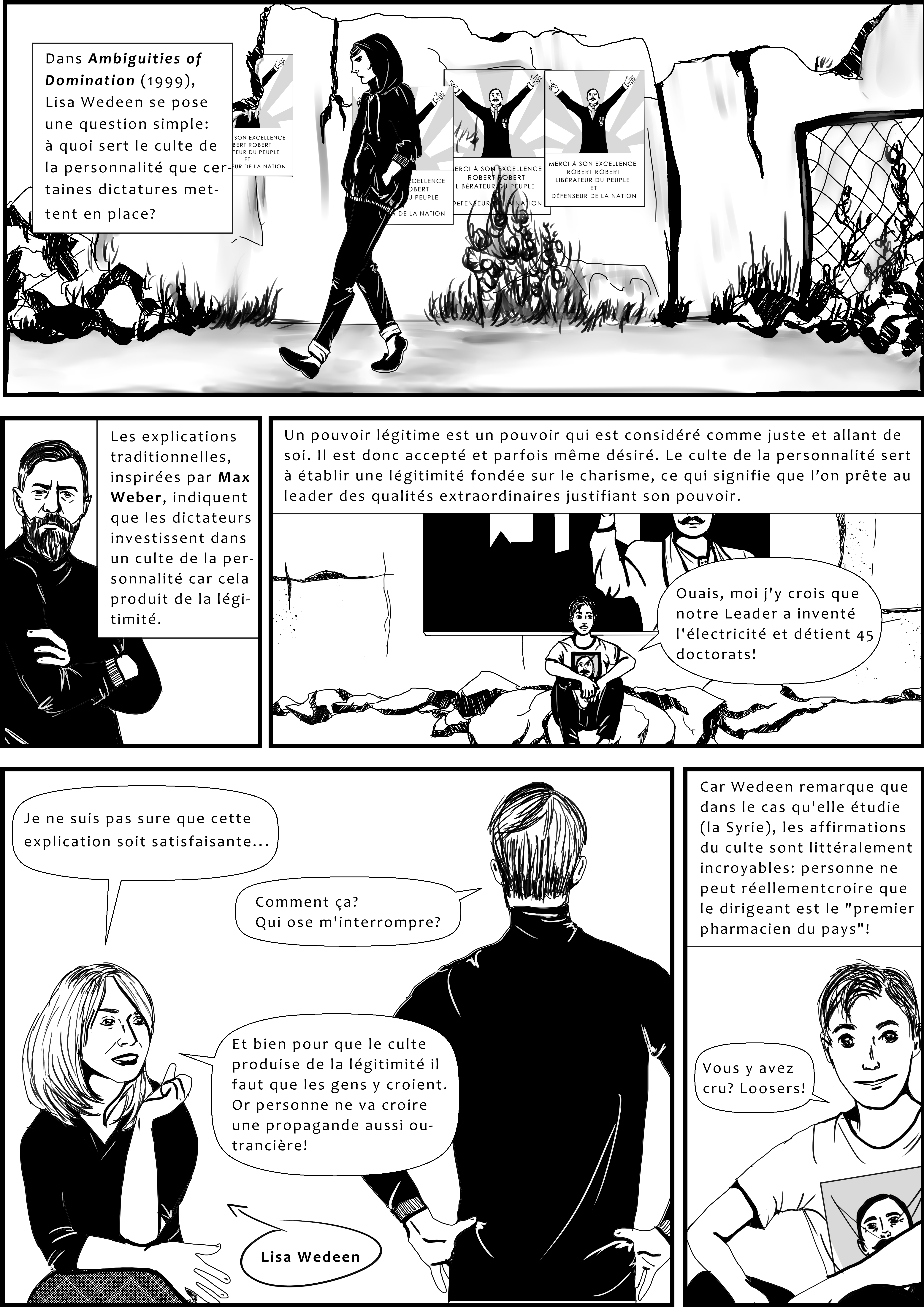 Je voulais continuer sur le thème de la démocratisation mais… j’ai finalement décidé de parler à la place d’un des meilleurs livres que j’ai lu en science politique. Ambiguities of Domination de Lisa Wedeen s’intéresse au culte de la personnalité mis en place en Syrie par Hafez el-Assad (hey, y’a un lien avec le post précédent!).