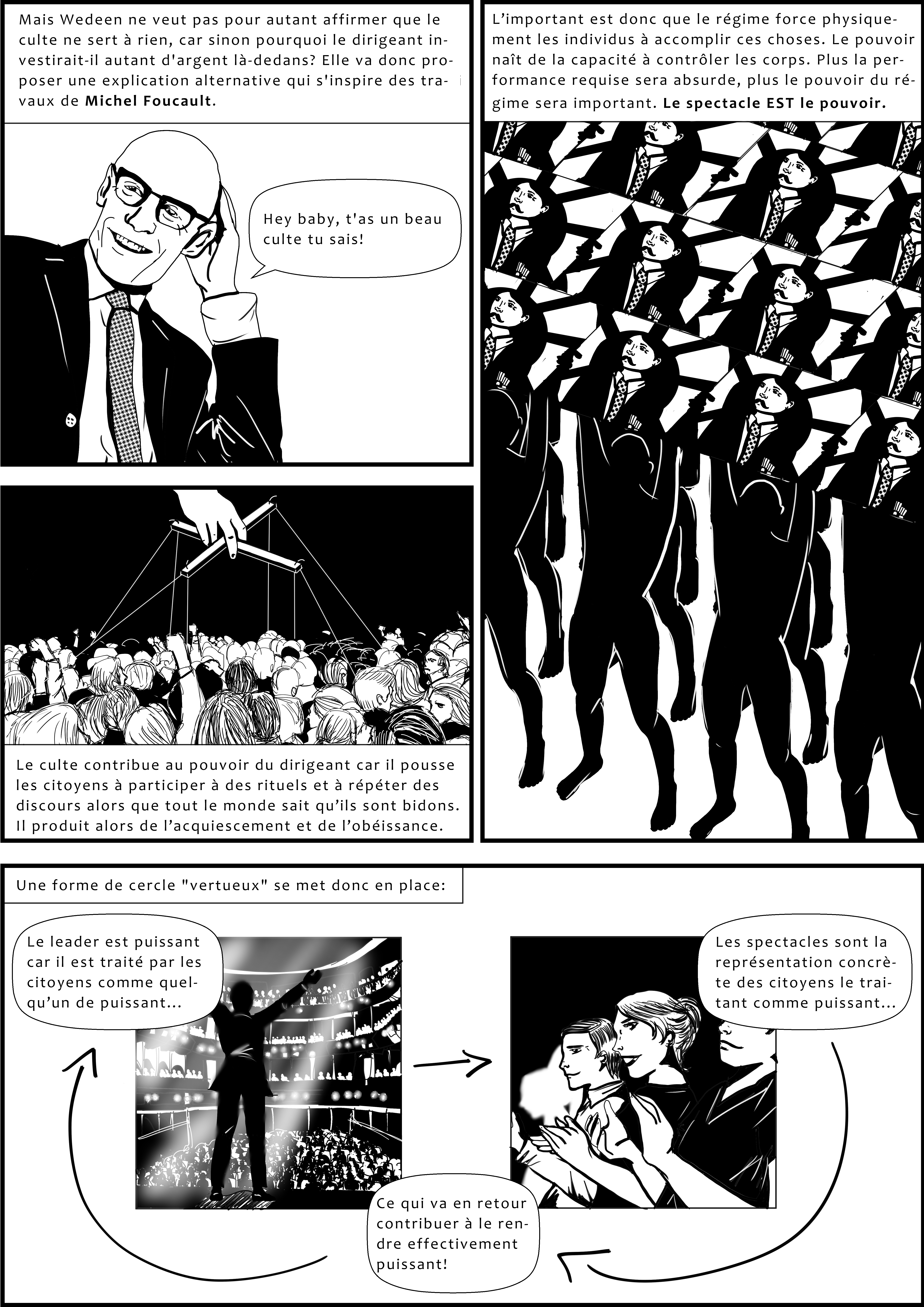 Pourquoi rejeter Weber? Le charisme se renforce par des rituels et Weber passe bien du temps dans la Sociologie des Religions à décrire la routinisation du charisme et son intégration dans une « conduite », terme que Foucault emploie lui aussi. En fait, Weber et Foucault sont plus proches qu’on ne le pense… même si on ne les présente pas ainsi. J’ai hâte au prochain 🙂